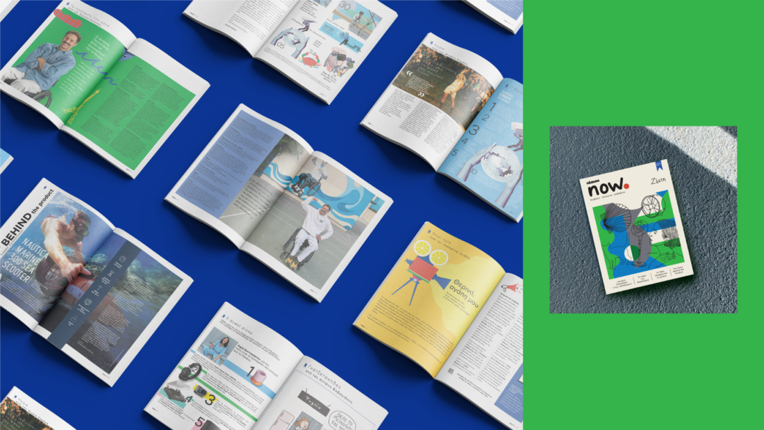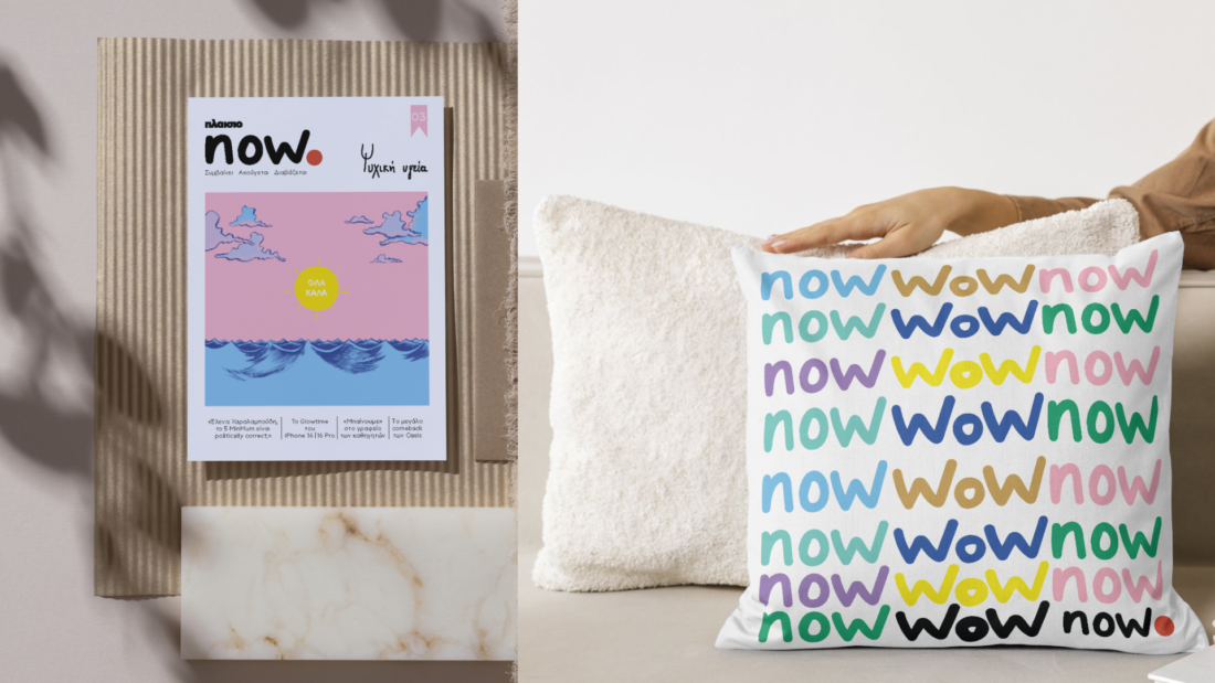 The design of “NOW” draws from the brand DNA of Plaisio, which embodies the concept of immediacy and relevance. The name “NOW” itself signifies presence and action in the moment. This concept is further captured by the handwritten logo design, which brings a sense of personal connection, as if the magazine speaks directly to the reader. The handwritten style was chosen to reflect authenticity, movement, and flexibility, characteristics that align with the dynamic nature of “NOW.”