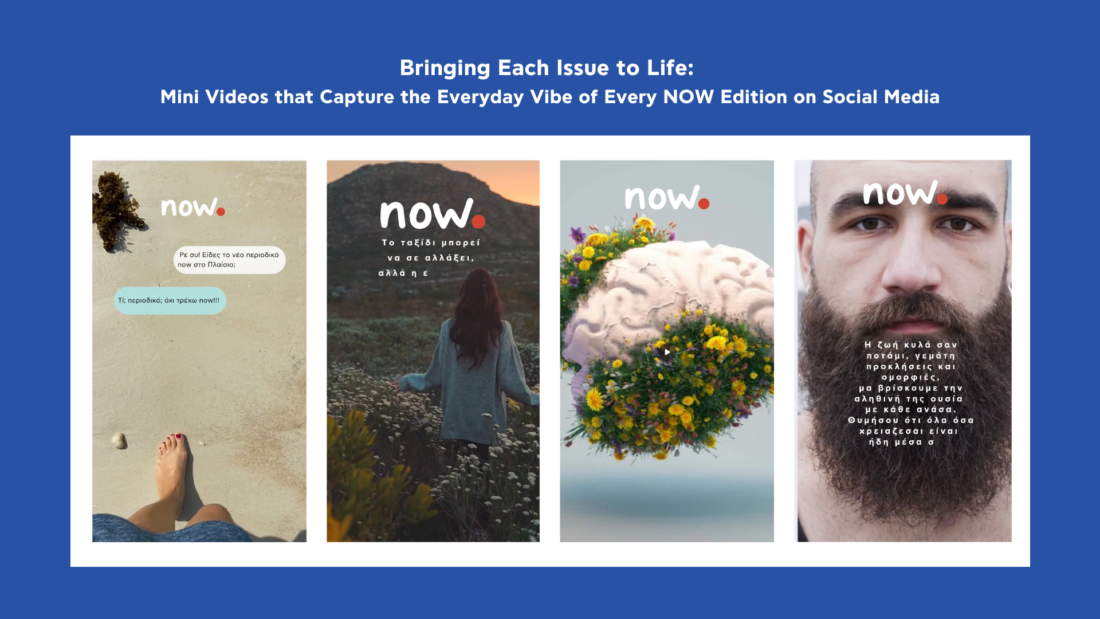 For each issue, a series of short videos is produced, showcasing the theme from an artistic, unique perspective. These mini-stories engage the audience by capturing the feeling of each issue, adding a visual, immersive experience that embodies the essence of “NOW.”