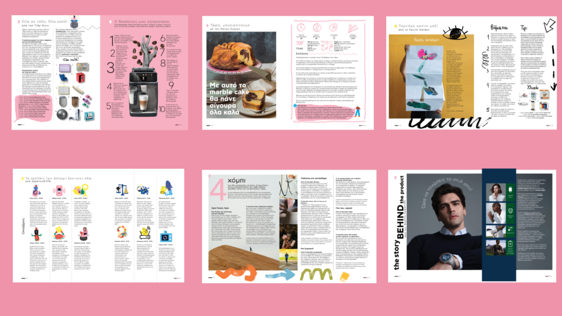 The design of “NOW” draws from the brand DNA of Plaisio, which embodies the concept of immediacy and relevance. The name “NOW” itself signifies presence and action in the moment. This concept is further captured by the handwritten logo design, which brings a sense of personal connection, as if the magazine speaks directly to the reader. The handwritten style was chosen to reflect authenticity, movement, and flexibility, characteristics that align with the dynamic nature of “NOW.”